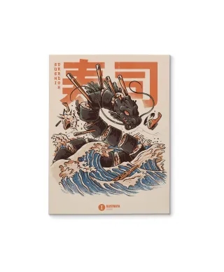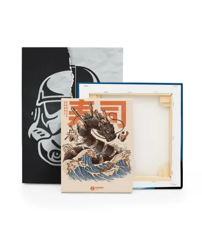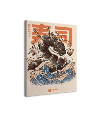 Ilustrata Sushi Dragon Canvas - obraz na płótnie Naciągnięty na sosnowe krosna. Gotowy do zawieszenia na ścianę. Wykonany z najwyższą dbałością o detale. Obraz jest ostry a barwy nasycone. Ten egzemplarz posiada zadrukowane boki, nie trzeba go dodatkowo oprawiać. Płótno bawełniane na który został naniesiony obraz jest bardzo mocne i posiada ciekawą fakturę. Blejtrama wykonana jest natomiast z grubego drzewa sosnowego. Jest solidna, jej szerokość to 3,5 cm a grubość 2 cm. Kupując ten produkt masz pewność, że kupujesz z legalnego źródła i wspierasz artystów. Obraz jest oryginalny i posiada licencję. Lubisz wyróżniać się ciekawymi, ekskluzywnymi dekoracjami na ścianę? Ten obraz jest idealny dla Ciebie. Nikt nie przejdzie obojętnie obok niego, jest po prostu piękny. Dane techniczne: Płótno bawełniane 300g/m2. Sosnowe krosnao grubości 2 cm i szerokości 3,5 cm. Obraz zadrukowany cyfrowo. Wymiary obrazu 30x40cm. Marka: Art Group
