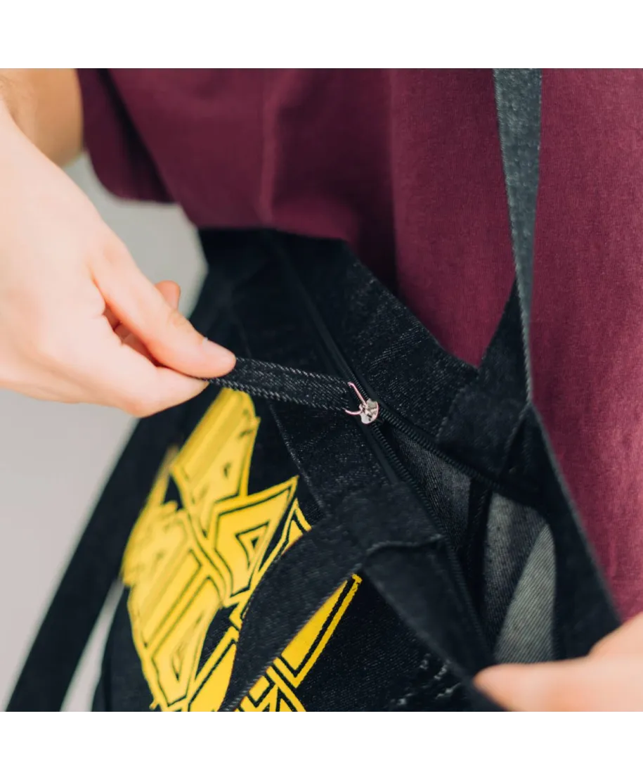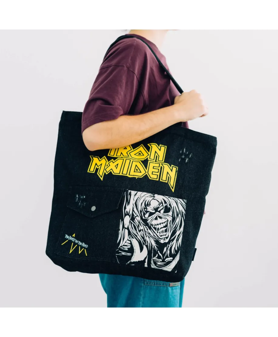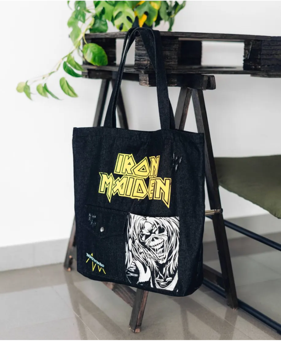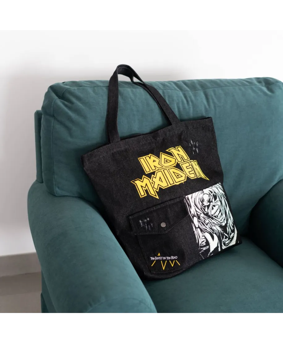 Oryginalna torba Iron Maiden Oryginalna torba bawełniana zdobiona motywami z popkultury. Wykonana w 100% z bawełny, o wymiarach 40x42x10 cm, ozdobiona charakterystyczną grafiką i naszywkami, łączy w sobie funkcjonalność z niepowtarzalnym stylem. Posiada główną, dużą kieszeń zamykaną na zamek błyskawiczny, jedną wewnętrzną kieszonkę i dwie zewnętrzne, w tym jedną zamykaną na metalowy zatrzask. Jest pojemna i wygodna w użytkowaniu. Nasza torba jest oficjalnym produktem posiadającym licencję, dzięki czemu masz 100% pewności, że otrzymasz oryginalny produkt.