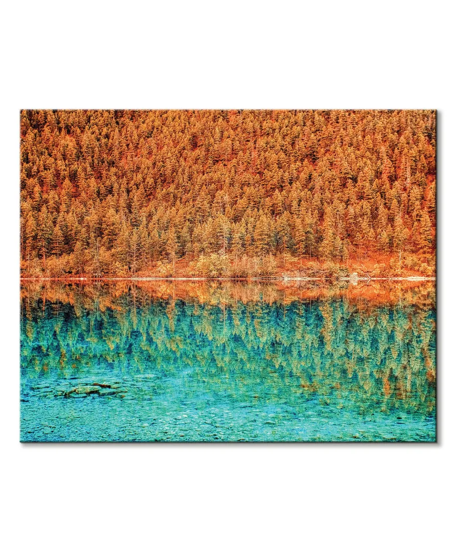 Jesienne drzewa nad jeziorem - obraz na płótnie