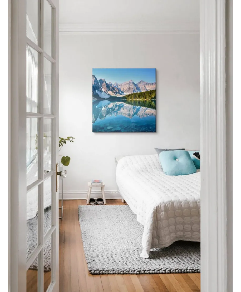 Oryginalny obraz na płótnieJezioro Moraine Oryginalny i licencjonowany obraz na płótnie idealny na każdą ścianę. Nasze obrazy wyróżniają: Fantastyczne barwy Wysokie nasycenie barw i ostrość, kolory utrzymują się przez długie lata. Płótno wysokiej jakości Płótno poliestrowe 300g/m2 jest trwałe i mocne, jego struktura jest naturalna. Trwałe kolory, Dodatkowo lakierowana powierzchnia sprawia, że kolory są żywe przez dziesięciolecia. Solidna rama, Wykonana jest z naturalnego, sosnowego drewna, jest mocna i gruba a obraz solidny i wytrzymały. Zadrukowane boki, obrazy posiadają zadrukowane boki, nie potrzebują żadnej dodatkowej oprawy. Szczegóły techniczne: wydruk na płótnie poliestrowym 220g/m2 sosnowe krosna o grubości 2 cm i szerokości 3,5 cm druk cyfrowy