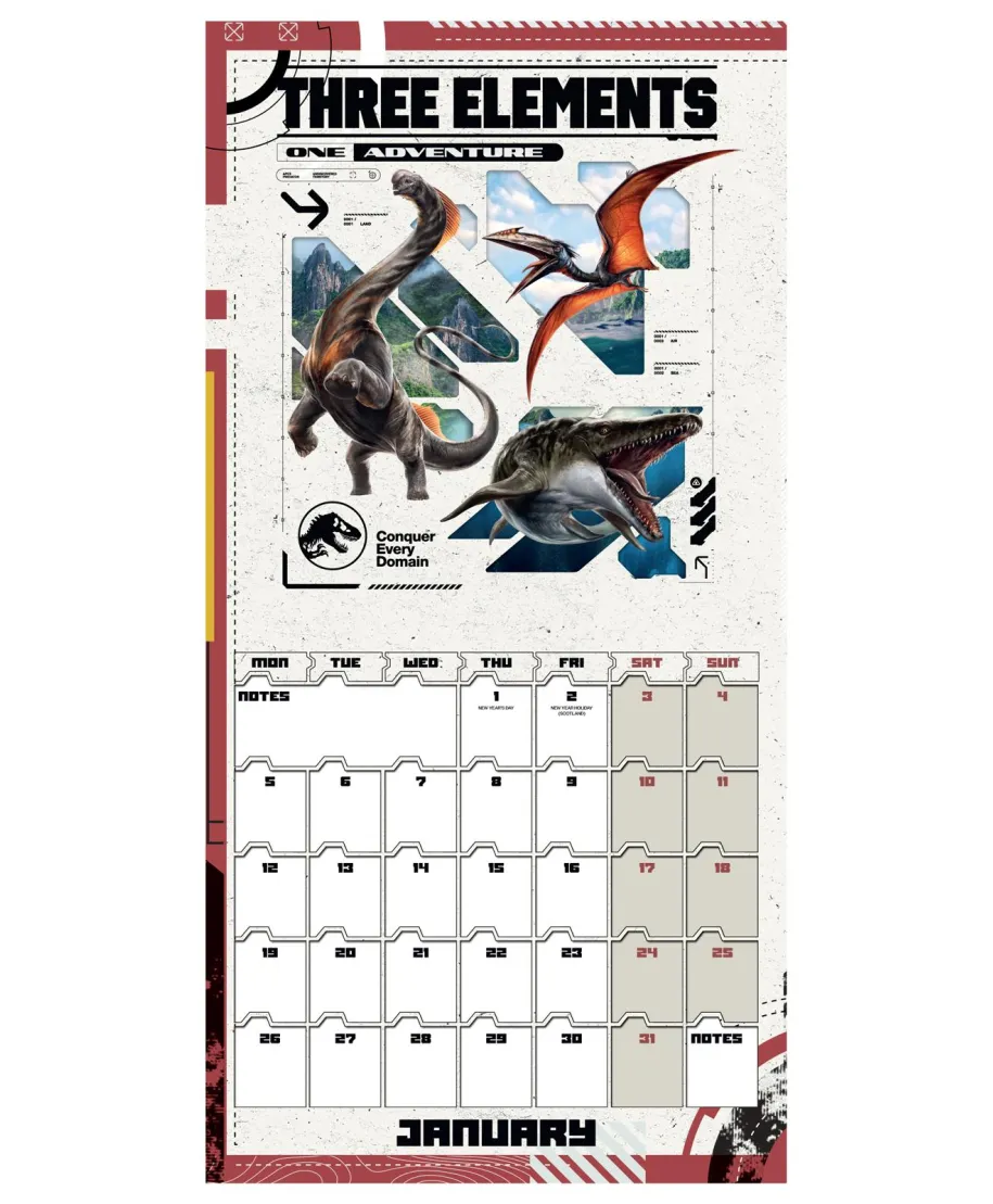 Jurassic World Rebirth oficjalny kalendarz na ścianę na 2026rok Oryginalny i licencjonowany kalendarz, posiada 12 rozkładanych stron o wymiarach 30x60 cm. Na każdej z kart znajduje się duża fotografiaoraz czytelne kalendarium z miejscem na notatki. W kalendarzu znajduje się 12 unikalnych zdjęć dla każdego miesiąca. Okładki wykonane są z papieru powlekanego matowego i laminowanego o gramaturze 250 g/m?, wnętrze z papieru powlekanego matowego o gramaturze 150 g/m?. Nagłówki są w języku angielskim. Oprawa zszywkowa. Złożony kalendarz 30x30 cm. Rozłożony kalendarz 30x60 cm. Zawiera otwór 5 mm do zawieszenia na ścianie.
