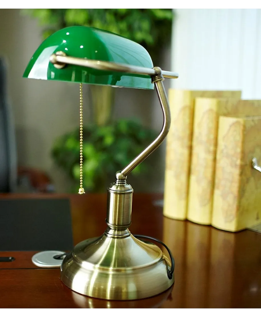 KLASYCZNA LAMPA BANKIERSKA BIURKOWA ZIELONA BANKER CLASSIC
