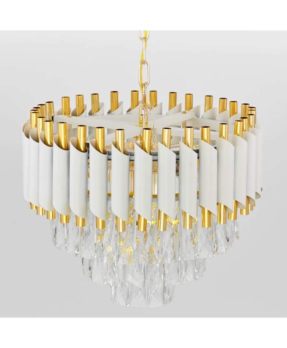 KLASYCZNY ŻYRANDOL KRYSZTAŁOWY BIAŁO-ZŁOTY MAZINI D40