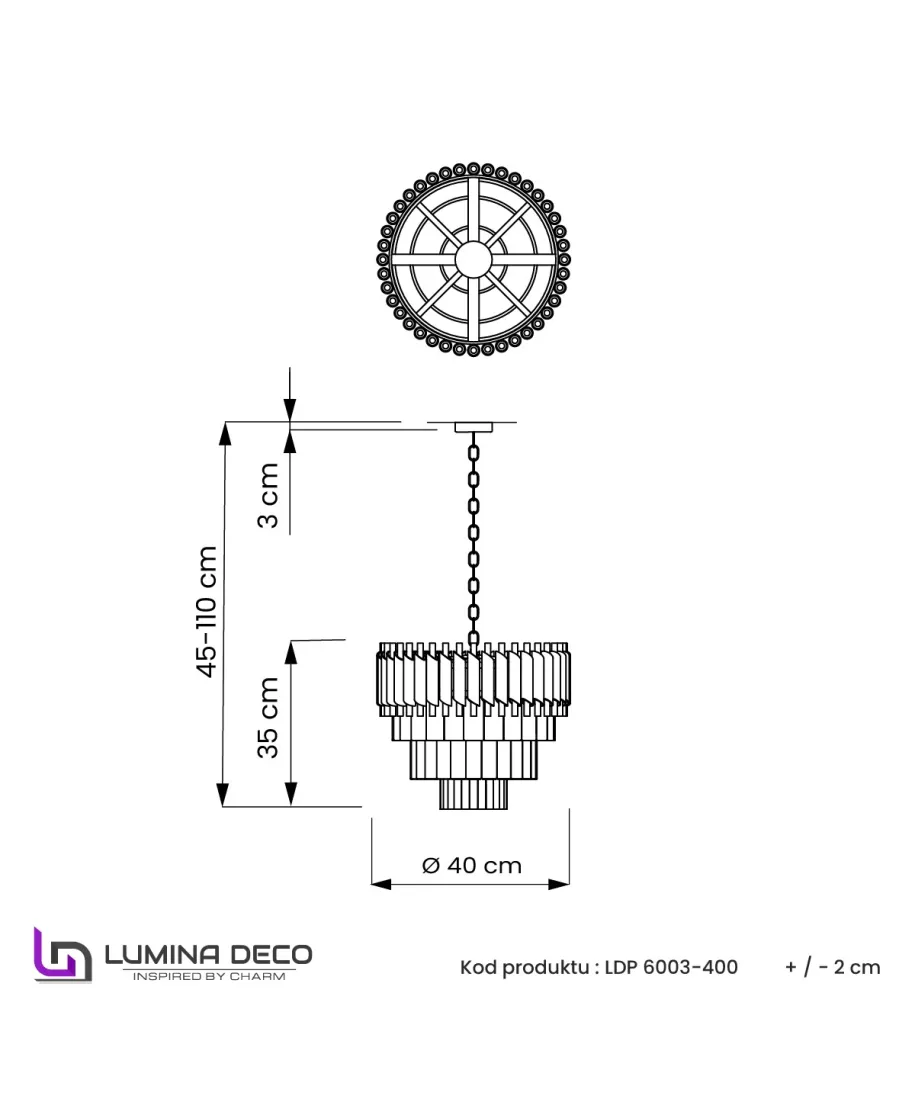 KLASYCZNY ŻYRANDOL KRYSZTAŁOWY CZARNO-ZŁOTY MAZINI D40