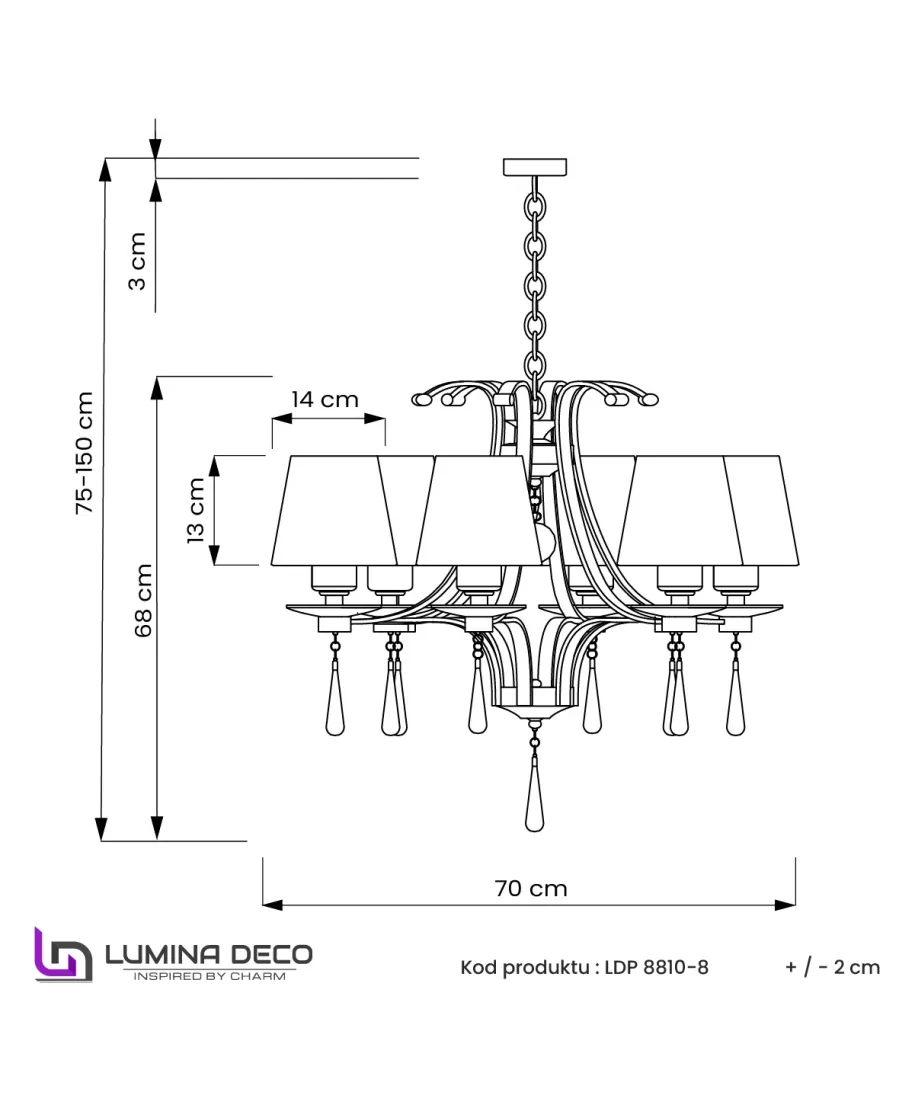 KLASYCZNY ŻYRANDOL KRYSZTAŁOWY ZŁOTY VENISIA W8