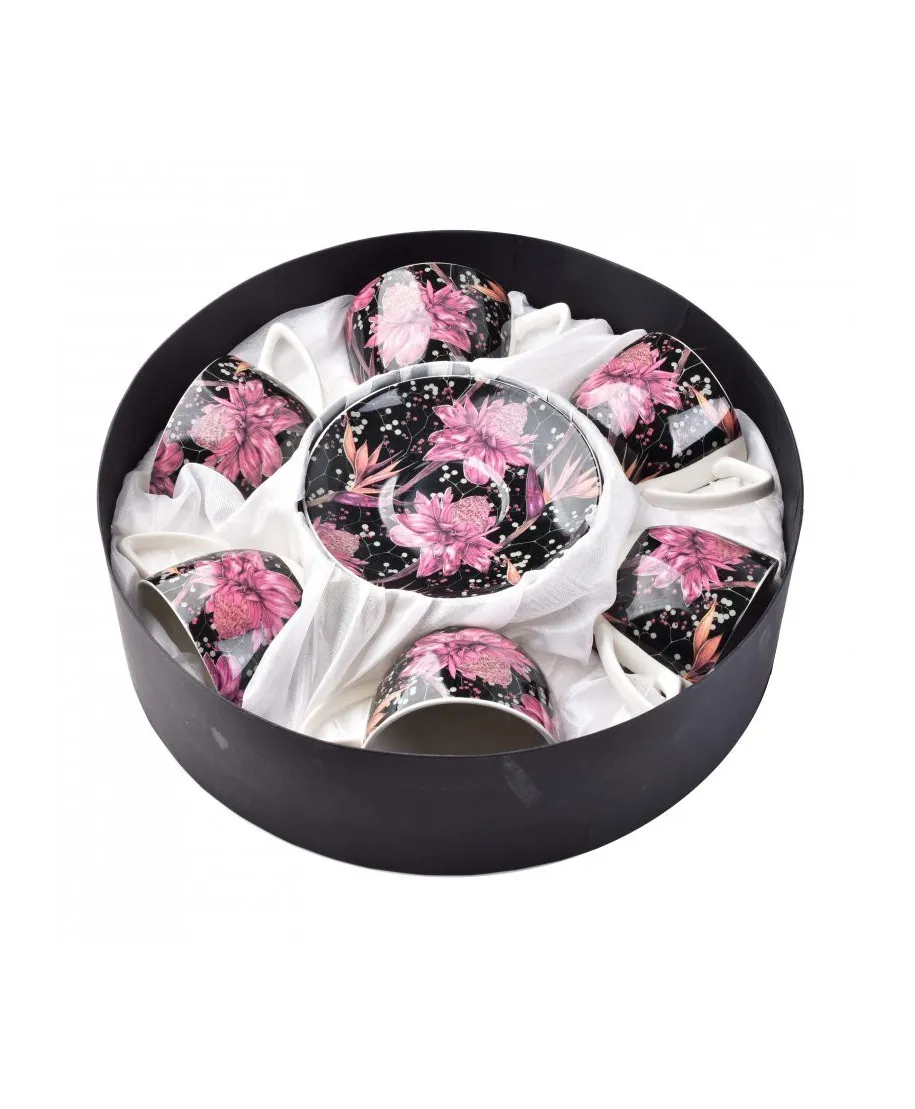 Komplet 6 filiżanek AYLA w okrągłym prezentowym pudełku. Wykonane z porcelany ze zdobieniem kwiatowym. Nadają się do mycia w zmywarce.