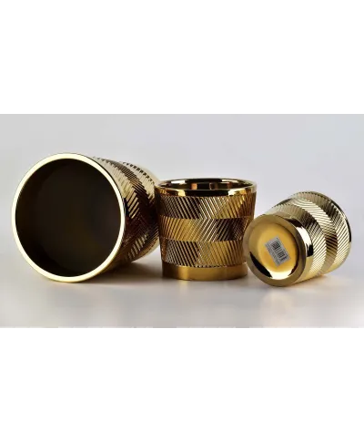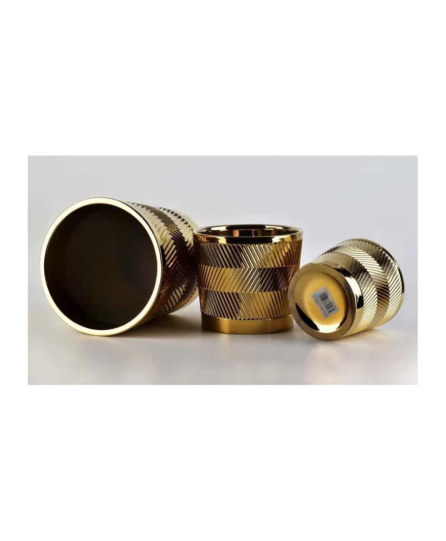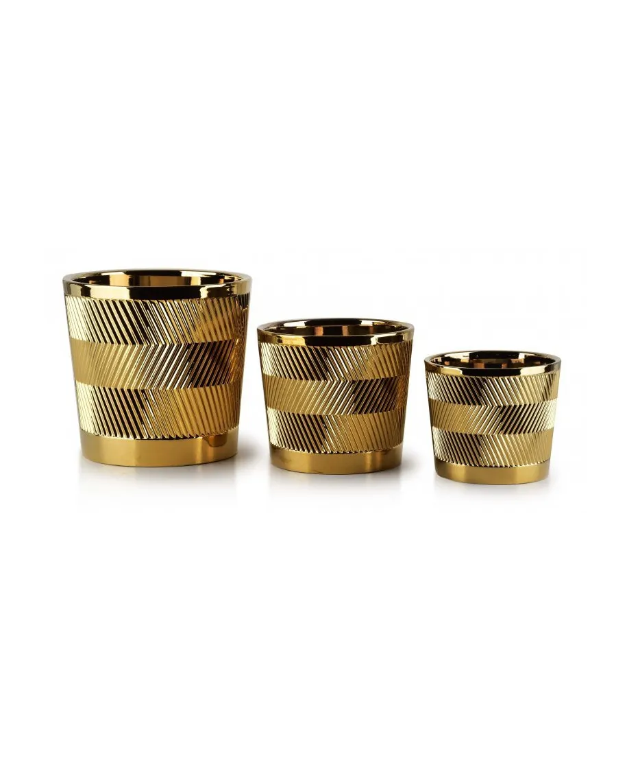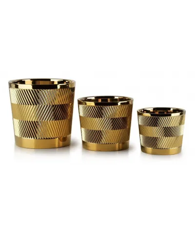 Komplet doniczek ceramicznych w kolorze złotym, zdobione oryginalnym wzornictwem
