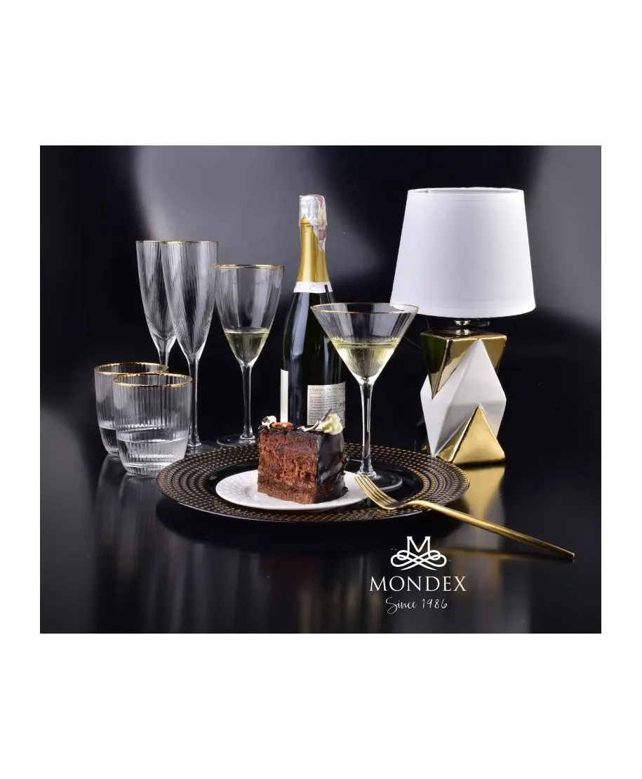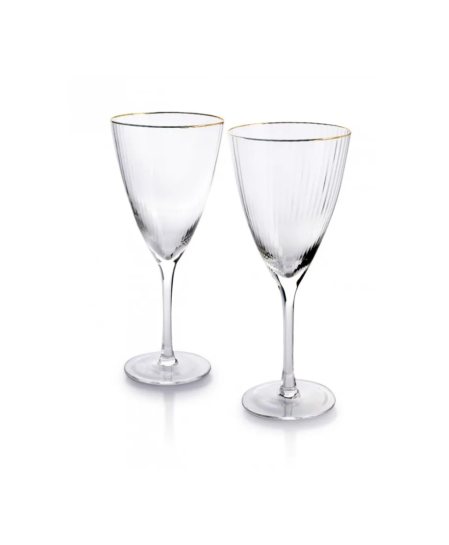 Komplet dwóch kieliszków do wina z serii Mada, wykonany ze szkła z ozdobnym złotym rantem.