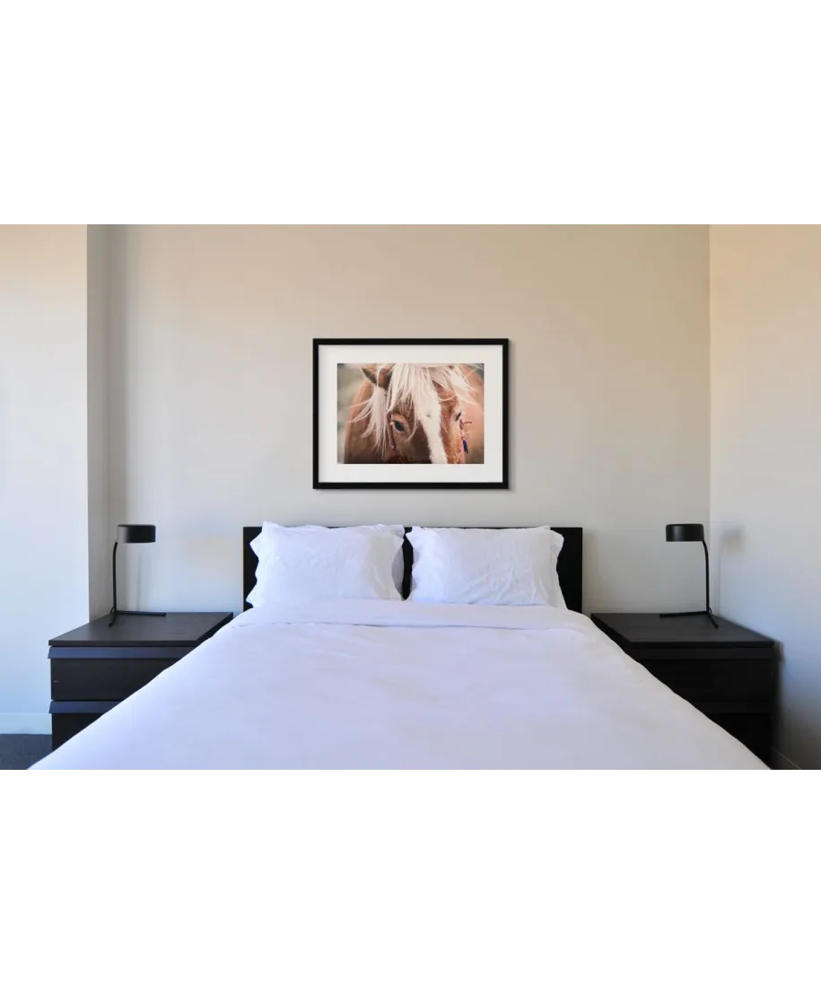 Koń ze złotą grzywą- oryginalna reprodukcja Nice Wall Szukasz oryginalnej reprodukcji na ścianę? Głębokie nasycenie barw i ostrość fotografii sprawi, że nie będziesz mógł od niej oderwać wzroku. Powierzchnia reprodukcji jest matowa, dzięki temu nie odbija intensywnego światła i przyjemnie się ją ogląda. Papier na którym wydrukowana jest reprodukcja jest bardzo mocny a druk trwały. Reprodukcja została zaprojektowana i wydrukowana przez Polską firmę. Kupując naszą reprodukcję wspierasz rodzimy rynek. Szczegóły techniczne: Wydruk na mocnym i grubym papierze 220g/m2 Wymiary arkusza reprodukcji 60x80 cm Marka: Nice Wall