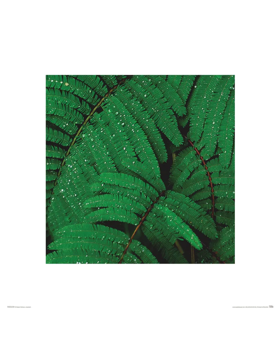 Krople na liściach - oryginalna reprodukcja Szukasz oryginalnej reprodukcji na ścianę? Głębokie nasycenie barw i ostrość fotografii sprawi, że nie będziesz mógł od niej oderwać wzroku. Reprodukcja posiada licencję, to oficjalne wydanie. Powierzchnia reprodukcji jest matowa, dzięki temu nie odbija intensywnego światła i przyjemnie się ją ogląda. Papier na którym wydrukowany jest obraz jest bardzo mocny a druk trwały. Niektóre reprodukcje posiadają białe, szerokie marginesy widoczne na przedstawionym obrazku. Szczegóły techniczne: wydruk na mocnym i grubym papierze 300g/m2 wymiary arkusza reprodukcji 40x40 cm