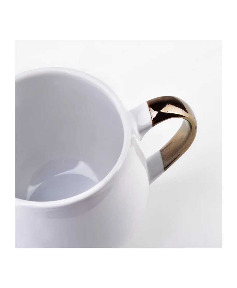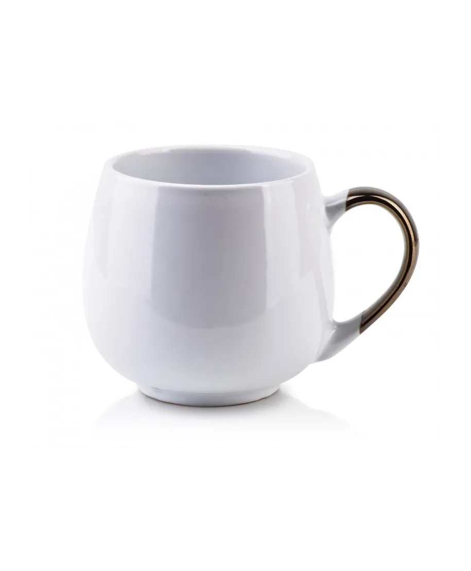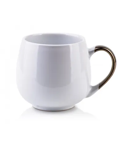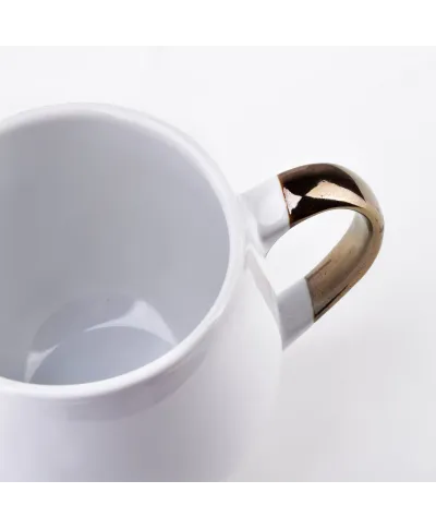 Kubek posiada zdobienie w kolorze postarzałego złota, które jest wykonane ręcznie. Pasek może się różnić na poszczególnych produktach.