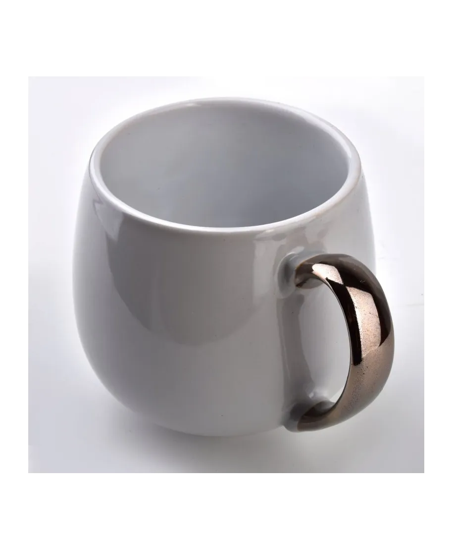 Kubek posiada zdobienie w kolorze postarzałego złota, które jest wykonane ręcznie. Pasek może się różnić na poszczególnych produktach.