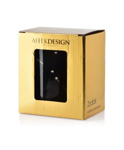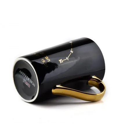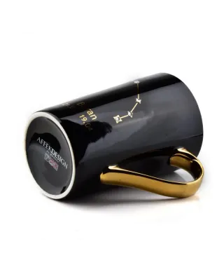 Kubek z serii Zodiak wykonany jest z porcelany w kolorze czarnym ze złotym uchem.