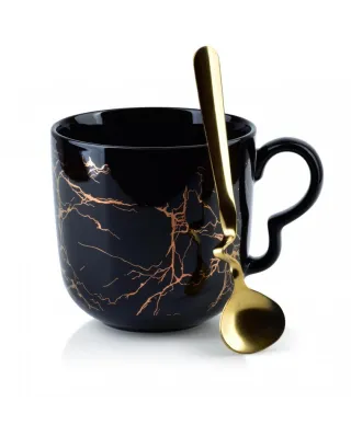 Kubek z łyżeczką - Porcelanowy - LIBBY MARBLE - 550ml