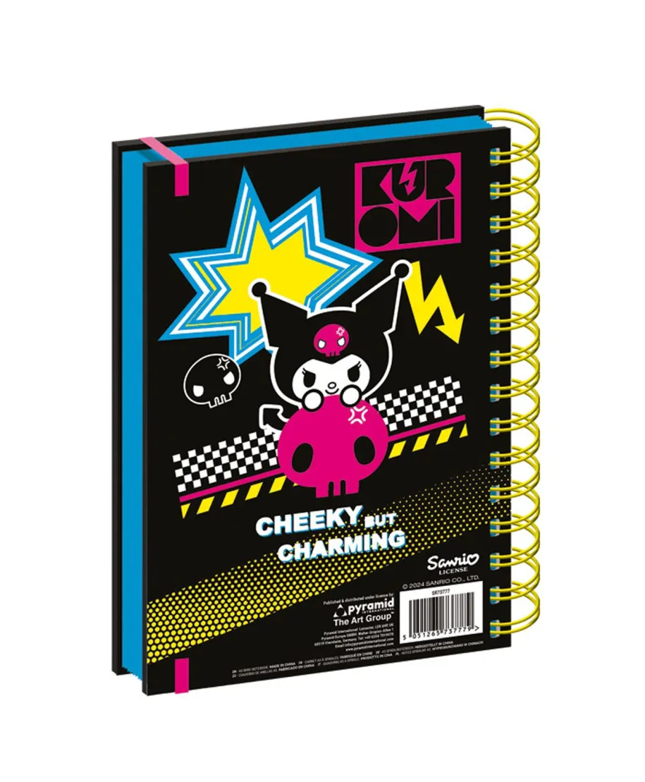 Notes A5 Kuromi Punk Vibes - kołozeszyt Stylowy notes A5 z postacią Kuromi w punkowym stylu! Twarda oprawa, sprężysty grzbiet i gumka zamykająca sprawiają, że jest idealny do codziennego użytku. Wyraziste kolory i dynamiczny design to must-have dla fanów Sanrio. Szczegóły techniczne: Format: A5 Okładka: twarda Grzbiet: spiralny Zamykanie: gumka Licencjonowany produkt Sanrio.