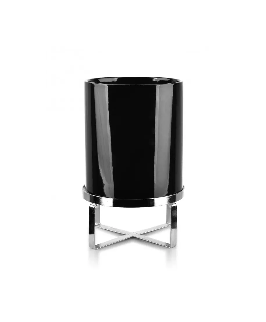 Kwietnik ceramiczny - Osłonka czarna na srebrnym stojaku - 18x21cm