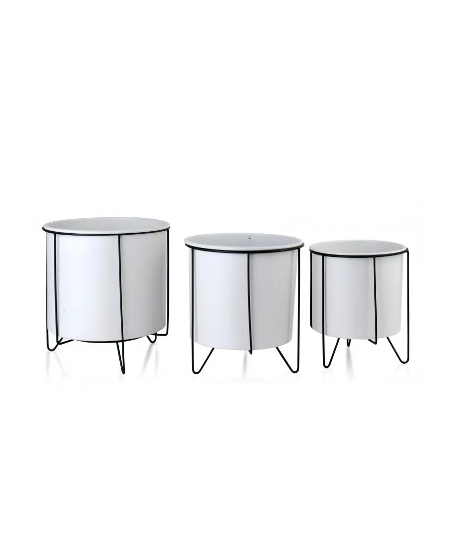 Kwietnik metalowy - Biała osłonka na czarnym stojaku - 18x20cm