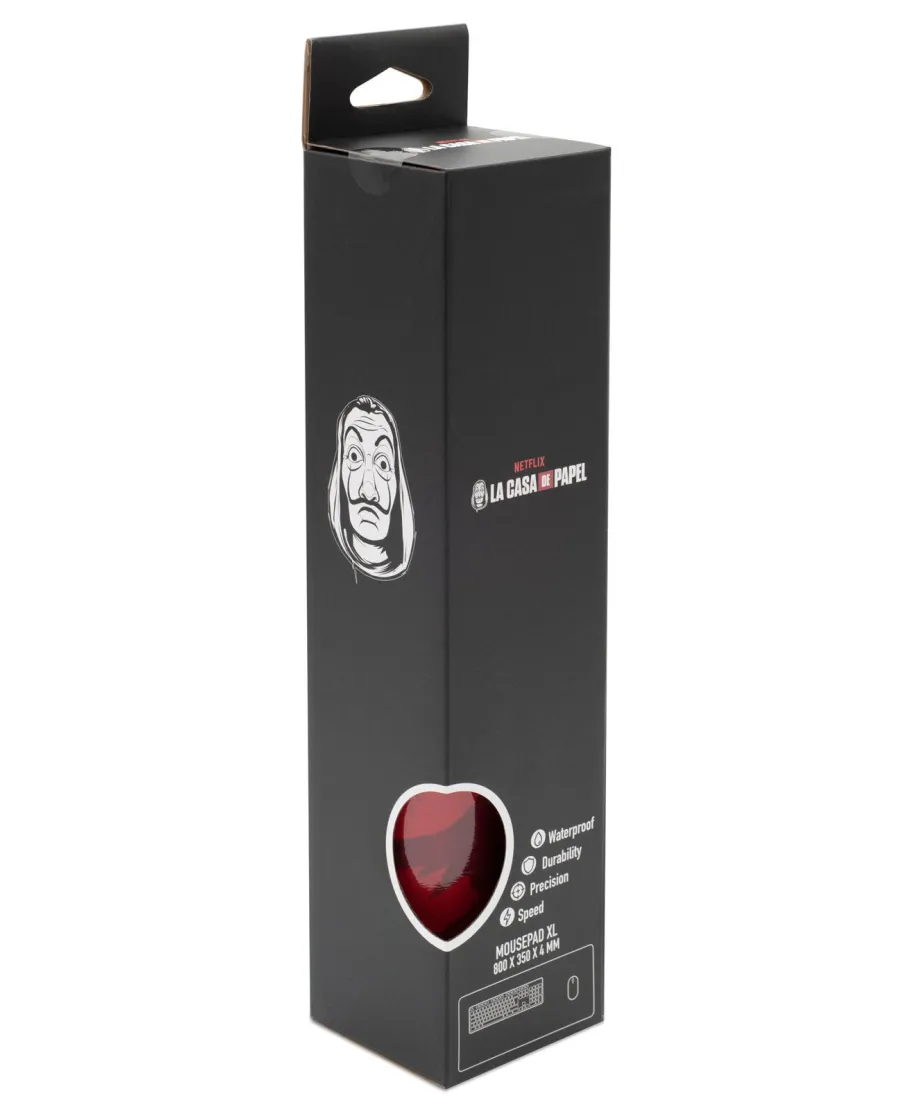 Podkładka pod myszkę "La Casa de Papel - Team Heist" Doświadcz emocji z "La Casa de Papel" za każdym razem, kiedy korzystasz z komputera dzięki naszej podkładce "Team Heist". Z czerwonym tłem, przedstawiającym mapę banku i charakterystyczną Maskę z prawej strony, jest to idealny wybór dla wszystkich fanów tej zapierającej dech w piersiach serii. Podkładka "La Casa de Papel - Team Heist" to idealne połączenie funkcjonalności i stylu. Wykonana z najwyższej jakości materiałów, będzie służyć przez lata, dodając koloru i charakteru twojemu biurku. Specyfikacje produktu: Antypoślizgowa: tak (powierzchnia na odwrocie podkładki) Materiał: neopren Wzmocnione krawędzie: tak Wymiar podkładki: 80x35 cm Wymiar opakowania: 36x8,3x8 cm Oficjalne wydanie Produkt posiada licencję producenta. Kupując w naszym sklepie masz 100% pewności, że otrzymasz oryginalny produkt. Zamawiając w autoryzowanym sklepie wspierasz ulubionych artystów, twórców i marki.