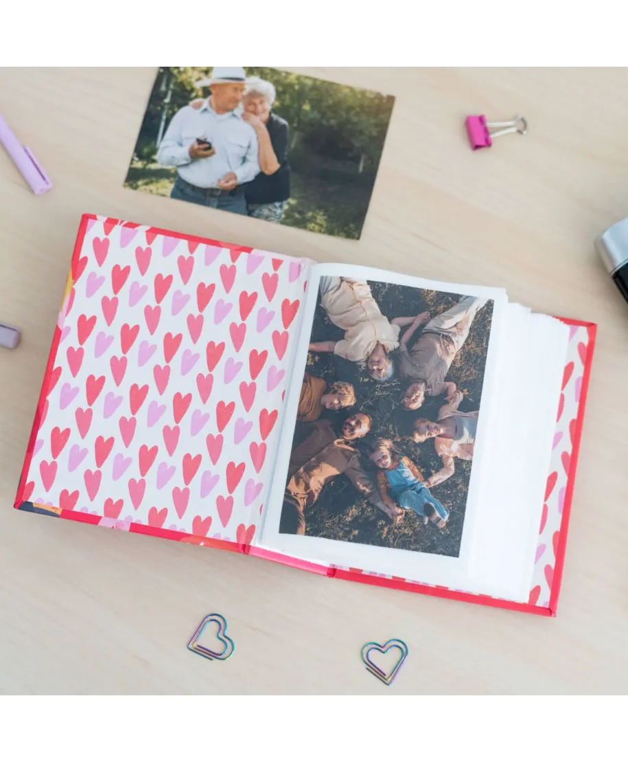 Album na zdjęcia La La Love Album w twardej okładce zabezpieczony foliową obwolutą. Jego strony posiadają kieszonkę z folii, która ułatwia umieszczanie fotografii. Album posiada 100 stron na których umieścić możesz 100 zdjęć w rozmiarze: 10x15 cm, 9x13 cm, INSTAX, POLAROID Szczegóły techniczne: Wymiary zewnętrzne: 13x17 cm Wymiary strony: 11x15,5 cm Okładka: twarda, papierowa Karty: miękkie, tworzywo sztuczne, kieszenie Rodzaj albumu: zdjęcia wsuwane Wykończenie albumu: klejony Kolor kart: biały