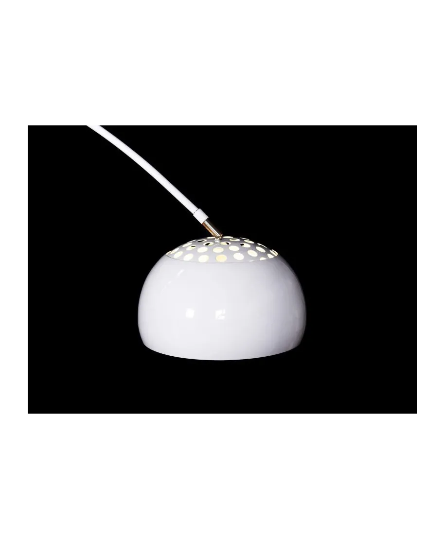 Ramię oraz kulisty klosz lampy wykonane są z metalu, natomiast podstawa, będąca solidnym wsparciem dla całej konstrukcji, powstała z granitu. Piękna subtelna barwa podstawy oraz interesujący dekor klosza w kształcie kuli to główne elementy zdobiące lampę