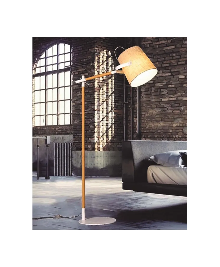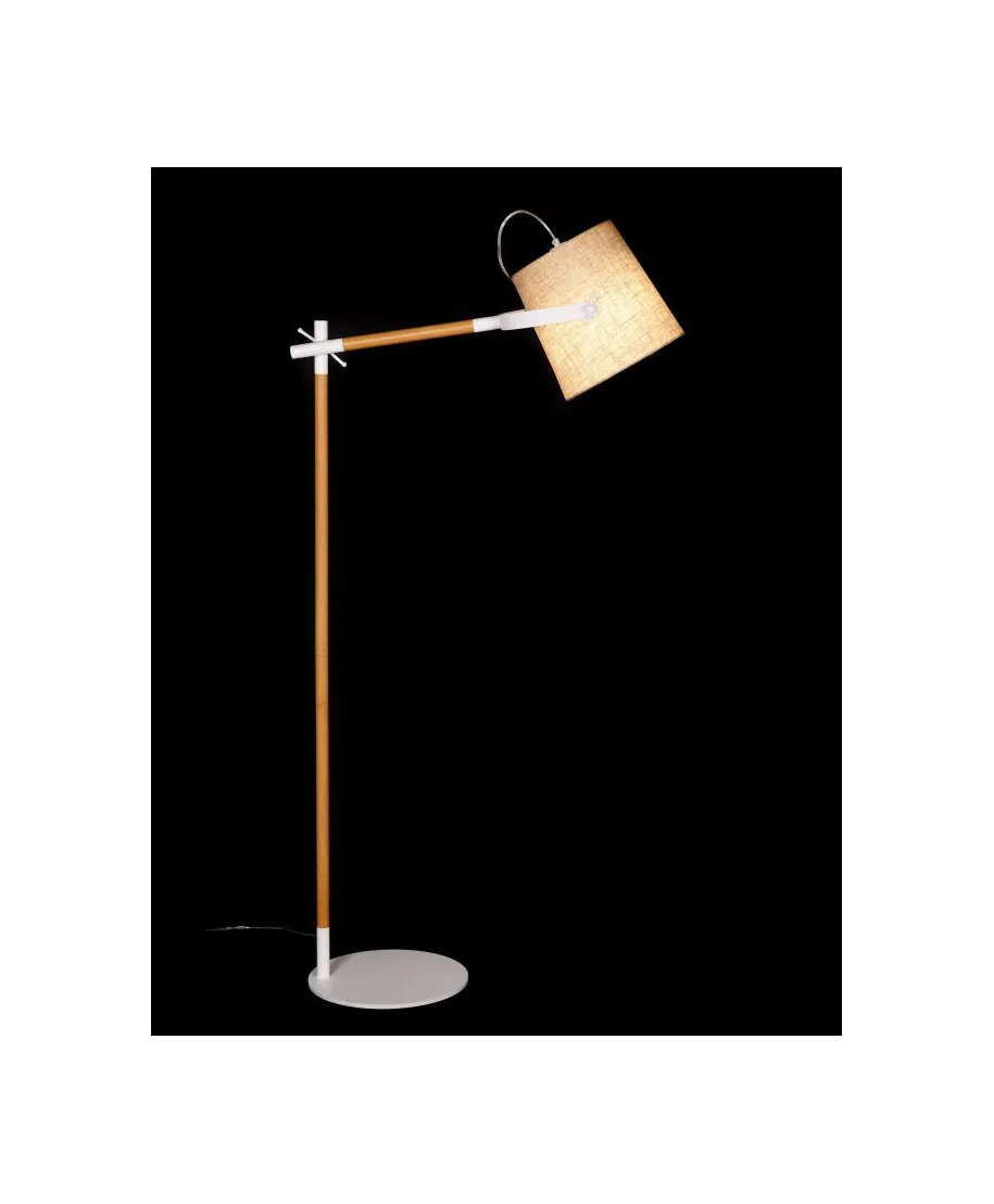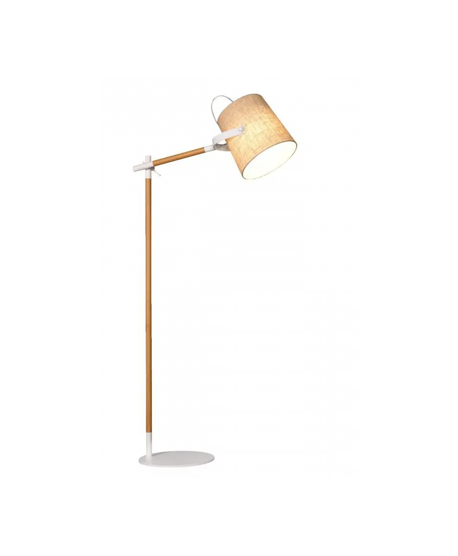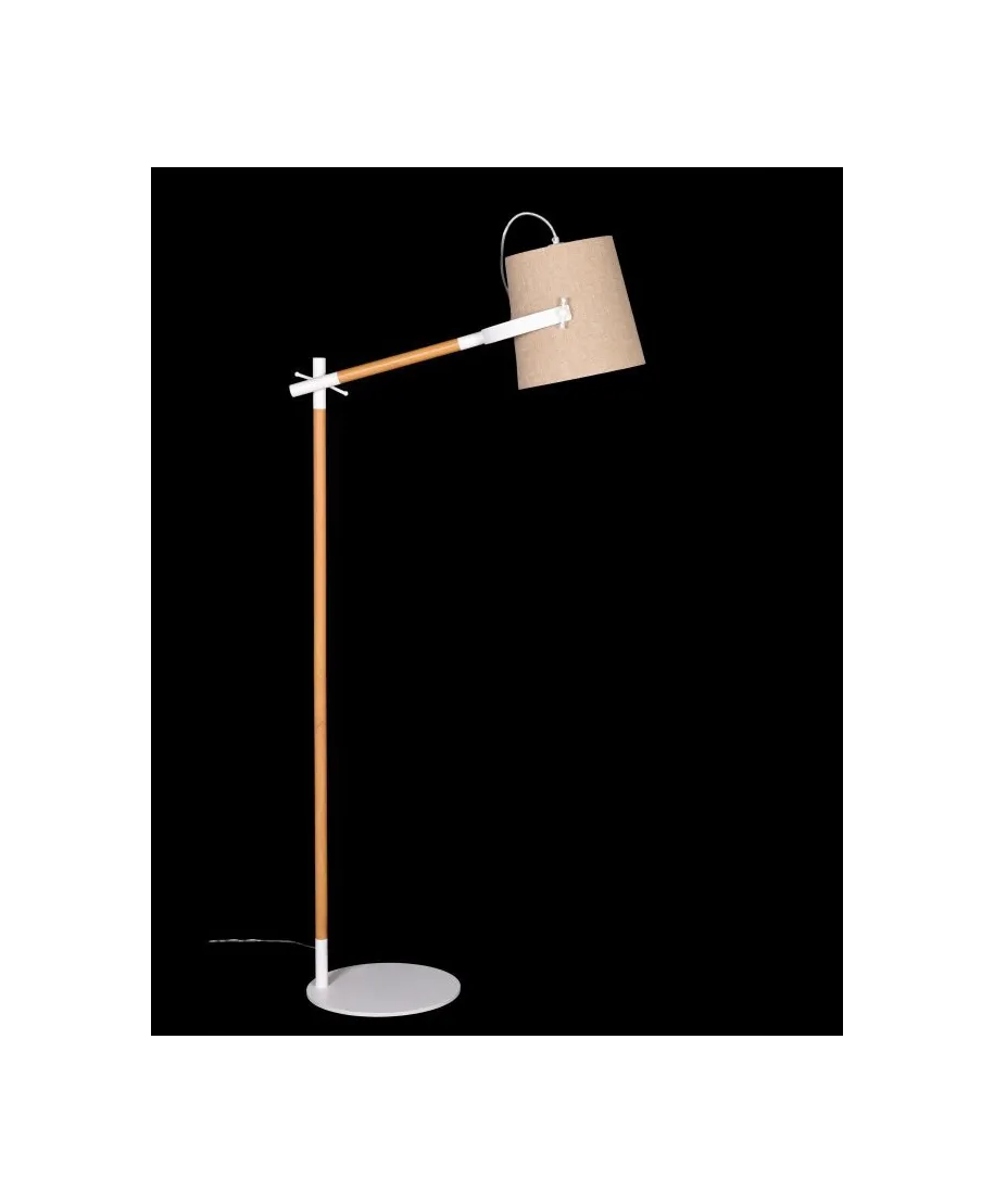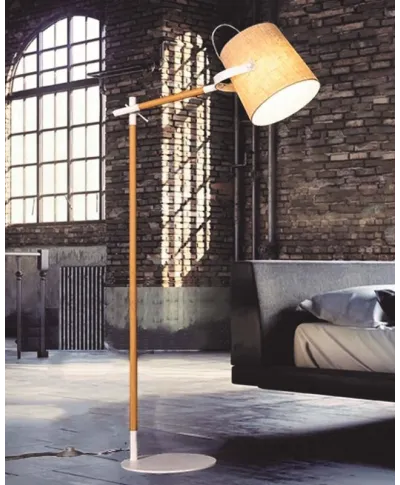 Lampa podłogowa doskonale współgra z większością mebli i dodatków w pomieszczeniu, dzięki zastosowaniu stonowanych barw oprawy i abażuru. Kremowa tkanina pokrywająca abażur świetnie pasuje do kremowej ramy lampy oraz bieli pozostałych jej części.