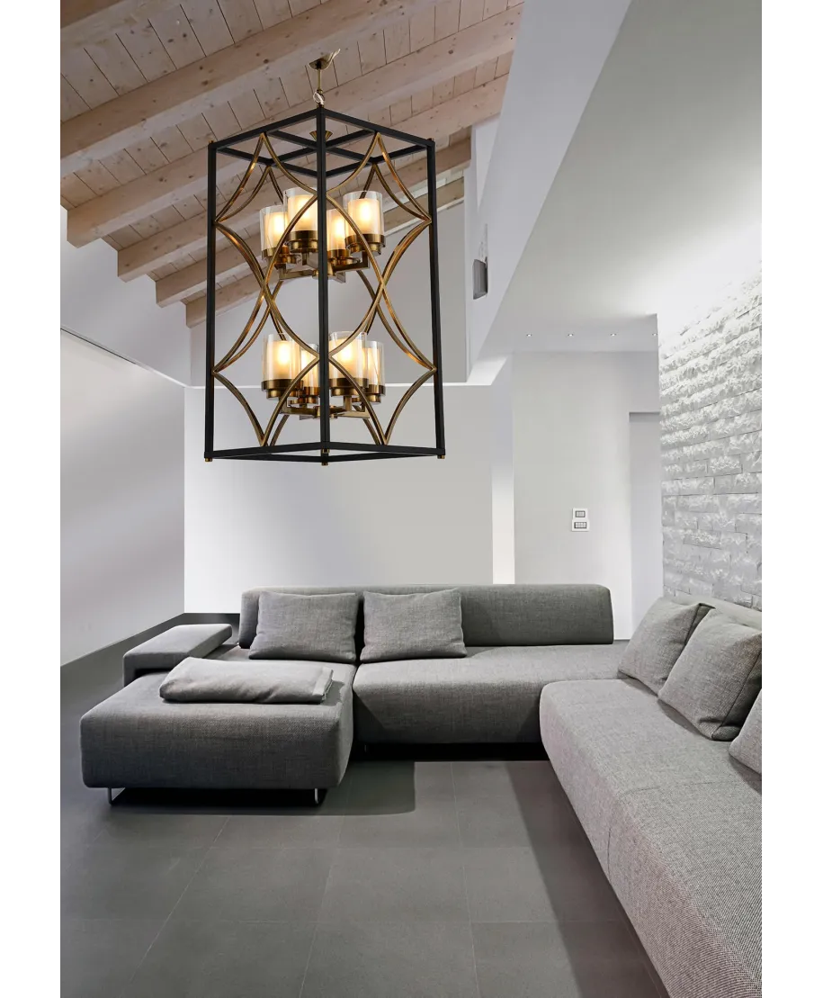 LAMPA WISZĄCA LOFT CZARNO-MOSIĘŻNA QUADRATO DUO