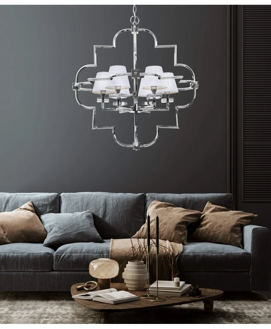 LAMPA WISZĄCA NOWOCZESNA BIAŁO-CHROMOWANA BALTIMORE W6
