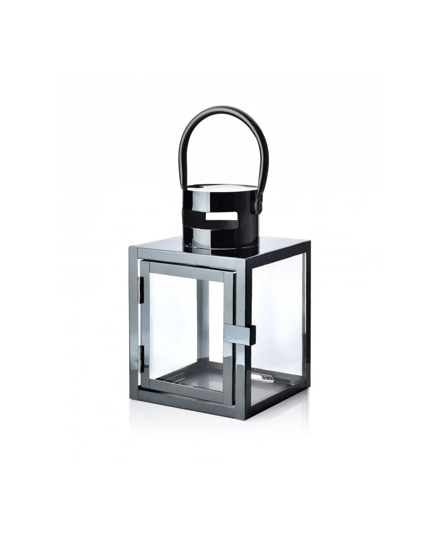 Latarenka w kolorze czarnym, wykonana z metalu oraz szkła.