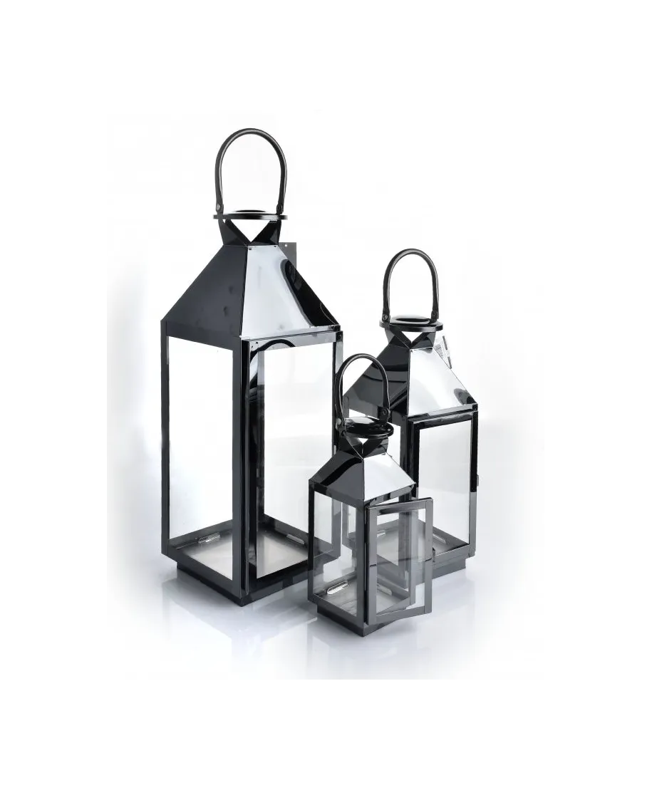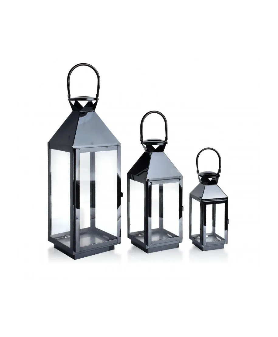 Latarnia metalowa - Komplet 3szt. - Czarne Lorenzo