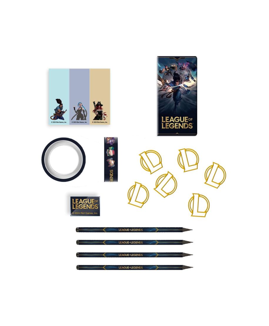 League Of Legends Champions - zestaw papeterii Numer katalogowy: SR2404616 Producent: Pyramid International Zestaw papeterii League of Legends Champions to bogaty komplet akcesoriów biurowych inspirowanych stylistyką gry. W eleganckim opakowaniu znajdują się ołówki, memo strips, spinacze, mały notes, temperówka oraz taśma washi. Każdy element zdobi grafika nawiązująca do bohaterów LoL, co podkreśla charakter całego zestawu i czyni go atrakcyjnym dla miłośników serii. Szczegóły techniczne Zawartość: 4 ołówki, 3 memo strips, notes A6, 1 temperówka, 1 taśma washi, 6 spinaczy Motyw: League of Legends Champions Opakowanie: zestaw papeterii Wykończenie: nadruki pełnokolorowe Oryginalny produkt na oficjalnej licencji League of Legends, wykonany z dbałością o estetykę oraz jakość, idealny do sprzedaży w asortymencie gadżetów gamingowych.