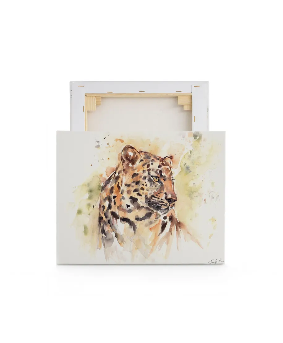 Leopard - obraz na płótnie Naciągnięty na sosnowe krosna. Gotowy do zawieszenia na ścianę. Wykonany z najwyższą dbałością o detale. Obraz jest ostry a barwy nasycone. Ten egzemplarz posiada zadrukowane boki, nie trzeba go dodatkowo oprawiać. Płótno bawełniane na który został naniesiony obraz jest bardzo mocne i posiada ciekawą fakturę. Blejtrama wykonana jest natomiast z grubego drzewa sosnowego. Jest solidna, jej szerokość to 3,5 cm a grubość 2 cm. Kupując ten produkt masz pewność, że kupujesz z legalnego źródła i wspierasz artystów. Obraz jest oryginalny i posiada licencję. Lubisz wyróżniać się ciekawymi, ekskluzywnymi dekoracjami na ścianę? Ten obraz jest idealny dla Ciebie. Nikt nie przejdzie obojętnie obok niego, jest po prostu piękny. Dane techniczne: Płótno bawełniane 300g/m2. Sosnowe krosnao grubości 2 cm i szerokości 3,5 cm. Obraz zadrukowany cyfrowo. Wymiary obrazu 50x40 cm. Marka: Art Group