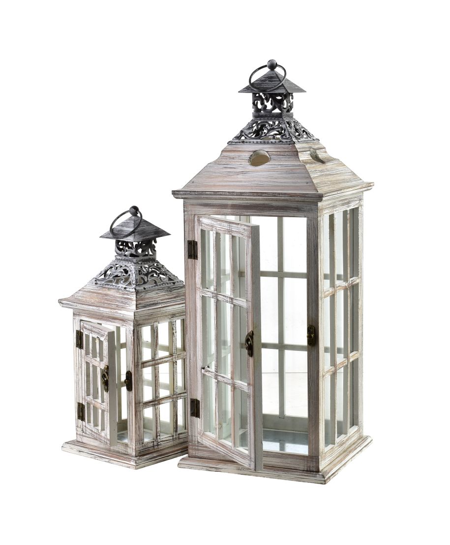 LEVI Komplet 2 latarni 20x20x51cm/14x14x34cm