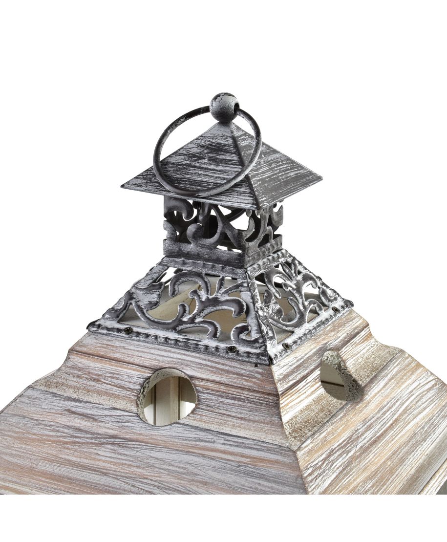 LEVI Komplet 2 latarni 20x20x51cm/14x14x34cm Elegancki i stylowy design, idealny do każdego wnętrza MONDEX since 1986Zestaw latarni LEVI to idealne rozwiązanie dla tych, którzy pragną ożywić swoje wnętrza lub przydomowe przestrzenie. Wykonane z drewna, latarnie te łączą rustykalny styl z nowoczesnym wykończeniem, tworząc ciepłą atmosferę w każdym miejscu. Ich subtelne wykończenie oraz klasyczny wygląd sprawią, że staną się idealnym dodatkiem do Twojego domu.Kluczowe cechyWykonanie z drewna o naturalnym wykończeniu, co nadaje ciepła i przytulnościStylowa metalowa ozdoba na dachu, która przyciąga wzrokSzkło w bocznych ściankach zapewnia elegancki efekt i efektowne oświetlenieDwa różne rozmiary: duża latarnia o wymiarach 20x20x51 cm oraz mała o wymiarach 14x14x34 cmUniwersalne zastosowanie: doskonałe zarówno do wnętrz, jak i na zewnątrzDlaczego warto wybrać kolekcję LEVIKolekcja LEVI wyróżnia się unikalnym połączeniem drewna i metalu, co zapewnia nie tylko estetykę, ale i funkcjonalność. Wysoka jakość wykonania sprawia, że latarnie będą cieszyć oczy przez długi czas. Przemyślany design sprawia, że są doskonałym wyborem zarówno do klasycznych, jak i nowoczesnych aranżacji, dodając im wyjątkowego charakteru.Zastosowanie i pielęgnacjaLatarnie LEVI nadają się do użytku wewnętrznego oraz zewnętrznego. Można je umieścić w ogrodzie, na tarasie czy na stole w salonie. Aby cieszyć się ich pięknem przez lata, należy je regularnie czyścić wilgotną ściereczką oraz unikać długotrwałego wystawiania na działanie wody, co może wpłynąć na jakość drewna.Dane techniczneWymiary: 20x20x51cm (duża), 14x14x34cm (mała)Materiał: drewnoKolor: naturalne drewno z szarym odcieniem oraz metalowe akcenty w kolorze srebrnym
