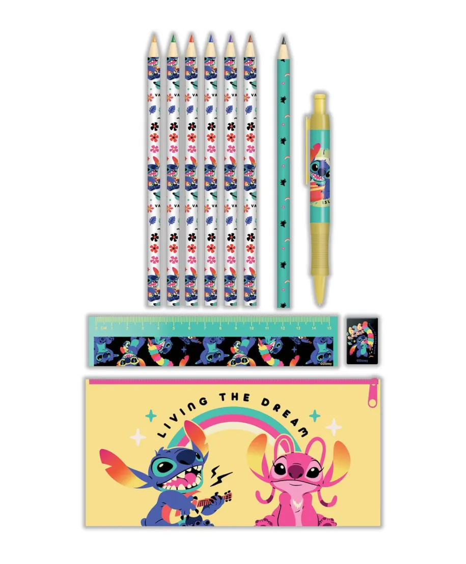 Zestaw przyborów szkolnych Lilo And Stitch Acid Pops Oryginalny zestaw przyborów szkolnych składających się z: ołówek długopis linijka gumka do mazania temperówka kredki notes A5 piórnik Idealny dla dzieci i młodzieży. Świetny pomysł na podarunek! Zestaw posiada oficjalną licencję producenta. Szczegóły techniczne: Marka: Pyrmid International Wymiary:25,5x24