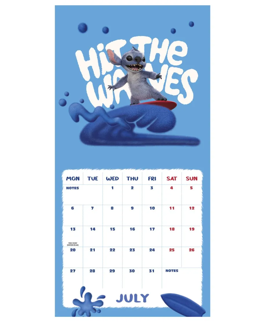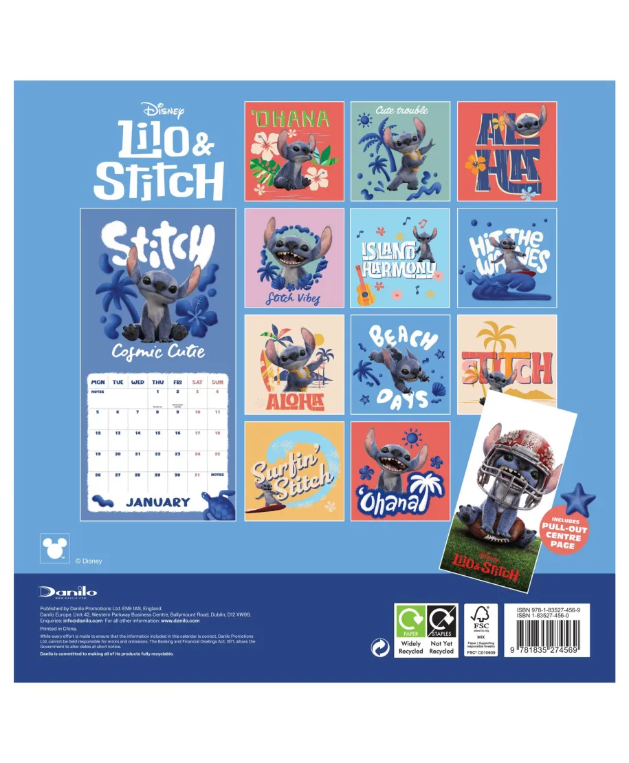 Lilo i Stitch oficjalny kalendarz na ścianę na 2026rok Oryginalny i licencjonowany kalendarz, posiada 12 rozkładanych stron o wymiarach 30x60 cm. Na każdej z kart znajduje się duża fotografiaoraz czytelne kalendarium z miejscem na notatki. W kalendarzu znajduje się 12 unikalnych zdjęć dla każdego miesiąca. Okładki wykonane są z papieru powlekanego matowego i laminowanego o gramaturze 250 g/m?, wnętrze z papieru powlekanego matowego o gramaturze 150 g/m?. Nagłówki są w języku angielskim. Oprawa zszywkowa. Złożony kalendarz 30x30 cm. Rozłożony kalendarz 30x60 cm. Zawiera otwór 5 mm do zawieszenia na ścianie.