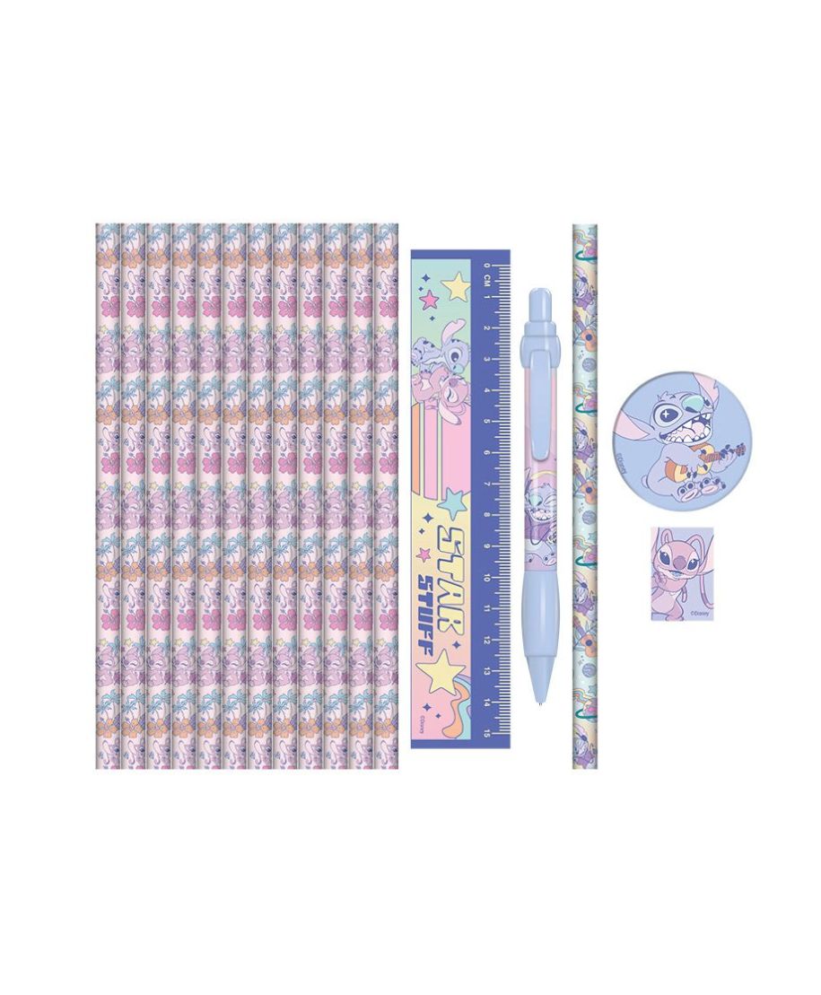 Lilo i Stitch Planetary - piórnik z wyposażeniem Numer katalogowy: SR2404694 Producent: Pyramid International Piórnik Lilo i Stitch Planetary od Pyramid International to kompletny zestaw szkolny w pastelowych kolorach. Zawiera 17 elementów: długopis, ołówek, kredki, linijkę, temperówkę, gumkę. Zamykany na zamek błyskawiczny, ozdobiony uroczym motywem Stitcha i Angel. Szczegóły techniczne Typ: piórnik z wyposażeniem Wymiary: 20,5x14x4 cm Zawartość: 26 elementów (długopisy, ołówki, kredki, linijka, gumka, temperówka, ekierka, plan lekcji) Motyw: Lilo i Stitch Planetary Kolorystyka: pastelowa Producent: Pyramid International Oryginalny produkt na oficjalnej licencji Disney Lilo & Stitch, wyprodukowany przez Pyramid International.