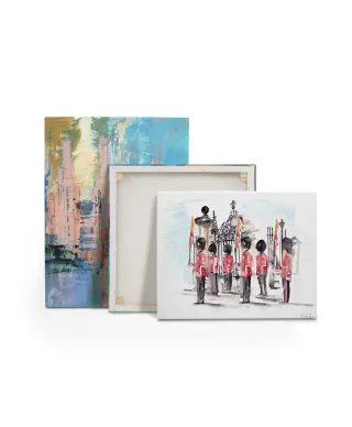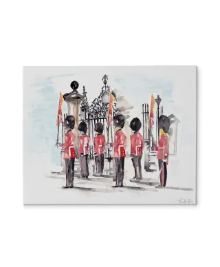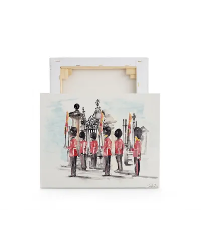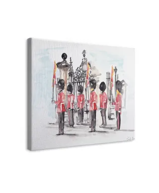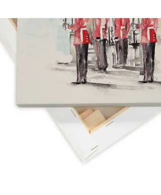 London Guards - obraz na płótnie Naciągnięty na sosnowe krosna. Gotowy do zawieszenia na ścianę. Wykonany z najwyższą dbałością o detale. Obraz jest ostry a barwy nasycone. Ten egzemplarz posiada zadrukowane boki, nie trzeba go dodatkowo oprawiać. Płótno bawełniane na który został naniesiony obraz jest bardzo mocne i posiada ciekawą fakturę. Blejtrama wykonana jest natomiast z grubego drzewa sosnowego. Jest solidna, jej szerokość to 3,5 cm a grubość 2 cm. Kupując ten produkt masz pewność, że kupujesz z legalnego źródła i wspierasz artystów. Obraz jest oryginalny i posiada licencję. Lubisz wyróżniać się ciekawymi, ekskluzywnymi dekoracjami na ścianę? Ten obraz jest idealny dla Ciebie. Nikt nie przejdzie obojętnie obok niego, jest po prostu piękny. Dane techniczne: Płótno bawełniane 300g/m2. Sosnowe krosnao grubości 2 cm i szerokości 3,5 cm. Obraz zadrukowany cyfrowo. Wymiary obrazu 50x40 cm. Marka: Art Group