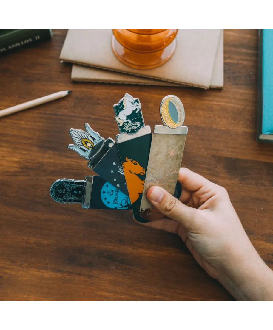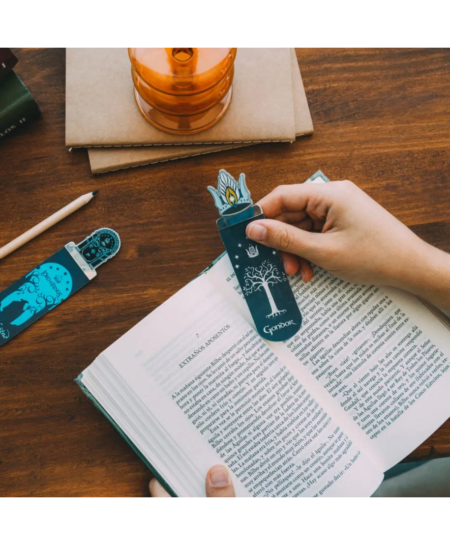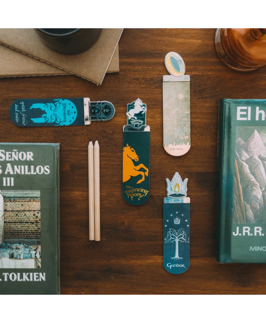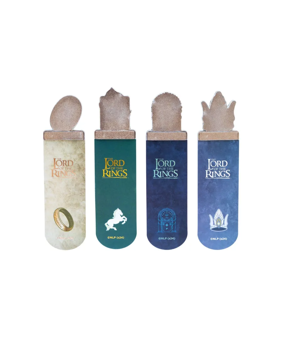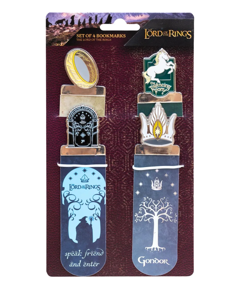Lord Of The Rings - zestaw 4 zakładek do książek Zestaw 4 zakładek inspirowanych Władcą Pierścieni to doskonała propozycja dla fanów literackiego i filmowego Śródziemia. Zakładki przedstawiają Jedyny Pierścień, Gospodę pod Rozbrykanym Kucykiem, drzwi Morii i symbol Gondoru. Wykonane z trwałego materiału i ozdobione metalowymi elementami, są praktyczne i dekoracyjne. Szczegóły techniczne Wymiary: ok. 5,4 x 12,7 cm Materiał: tworzywo sztuczne z metalowym elementem Zestaw: 4 zakładki Licencjonowany produkt Oryginalny, licencjonowany produkt Lord of the Rings. Świetny wybór na prezent lub do oferty książkowej.