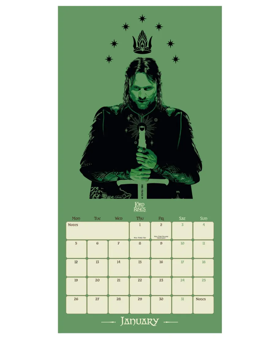 Lord Of The Rings oficjalny kalendarz na ścianę na 2026rok Oryginalny i licencjonowany kalendarz, posiada 12 rozkładanych stron o wymiarach 30x60 cm. Na każdej z kart znajduje się duża fotografiaoraz czytelne kalendarium z miejscem na notatki. W kalendarzu znajduje się 12 unikalnych zdjęć dla każdego miesiąca. Okładki wykonane są z papieru powlekanego matowego i laminowanego o gramaturze 250 g/m?, wnętrze z papieru powlekanego matowego o gramaturze 150 g/m?. Nagłówki są w języku angielskim. Oprawa zszywkowa. Złożony kalendarz 30x30 cm. Rozłożony kalendarz 30x60 cm. Zawiera otwór 5 mm do zawieszenia na ścianie.