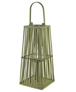 Lampion LUCIE GREEN 26,5x57 cm • Wiklina i drewno • Zielony dekor boho eko do domu i ogrodu
