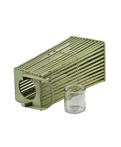 Wykonany z wikliny i drewna, zachwyca smukłą formą i pionowymi listewkami, które delikatnie rozpraszają światło świecy, tworząc romantyczne, ciepłe refleksy. Ręcznie pleciona struktura i staranne wykończenie podkreślają naturalny charakter i jakość wykonania.