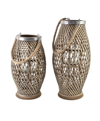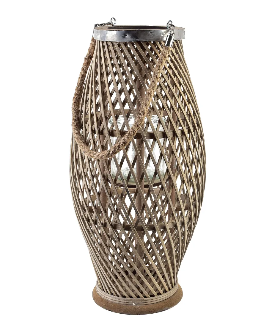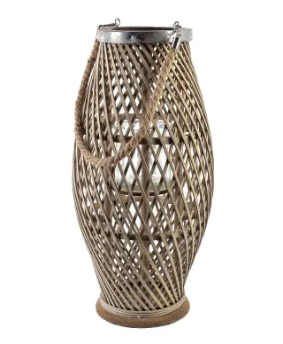 LUCIE GREY Lampion 23xH48cm marki MONDEX since 1986 to elegancki dodatek wykonany z naturalnej wikliny i drewna w subtelnym odcieniu szarości. Jego harmonijna forma i ażurowa konstrukcja delikatnie przepuszczają światło świecy, tworząc przytulną i romantyczną atmosferę. Doskonale sprawdza się jako dekoracja wewnętrzna lub na tarasie, dodając przestrzeni elegancji i naturalnego uroku.wymiary: 23xh48cm