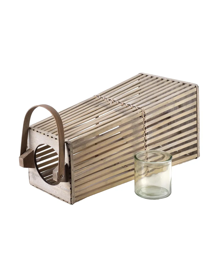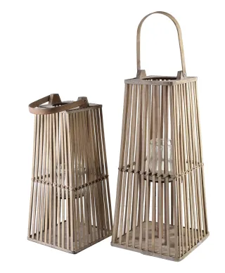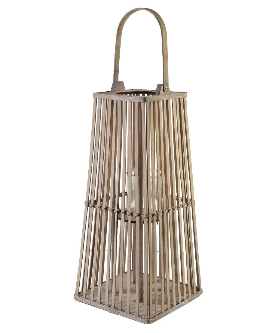 LUCIE GREY Lampion 26,5xH57cm marki MONDEX since 1986 to elegancki dodatek wykonanyz naturalnej wikliny i drewna w subtelnym odcieniu szarości. Jego harmonijna formi ażurowa konstrukcja delikatnie przepuszczają światło świecy, tworząc przytulną romantyczną atmosferę. Doskonale sprawdza się jako dekoracja wewnętrzna lub na tarasie, dodając przestrzeni elegancji i naturalnego uroku. wymiary: 26,5xh57cm