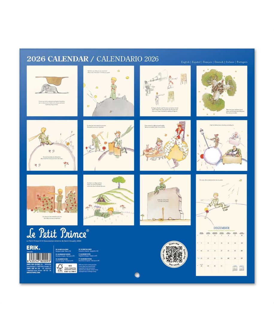 Mały Książę oficjalny kalendarz na ścianę na 2026rok Oryginalny i licencjonowany kalendarz, posiada 12 rozkładanych stron o wymiarach 30x60 cm. Na każdej z kart znajduje się duża fotografiaoraz czytelne kalendarium z miejscem na notatki. W kalendarzu znajduje się 12 unikalnych zdjęć dla każdego miesiąca + plakat. Okładki wykonane są z papieru powlekanego matowego i laminowanego o gramaturze 250 g/m2, wnętrze z papieru powlekanego matowego o gramaturze 150 g/m2. Nagłówki są w 6 językach:angielski, hiszpański, francuski, włoski, niemiecki i portugalski. Oprawa zszywkowa. Złożony kalendarz 30x30 cm. Rozłożony kalendarz 30x60 cm. Zawiera otwór 5 mm do zawieszenia na ścianie.