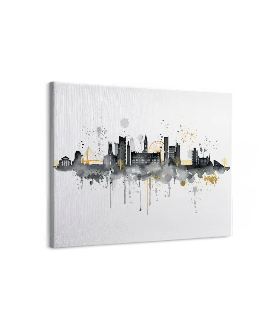 Manchester Skyline - obraz na płótnie Naciągnięty na sosnowe krosna. Gotowy do zawieszenia na ścianę. Wykonany z najwyższą dbałością o detale. Obraz jest ostry a barwy nasycone. Ten egzemplarz posiada zadrukowane boki, nie trzeba go dodatkowo oprawiać. Płótno bawełniane na który został naniesiony obraz jest bardzo mocne i posiada ciekawą fakturę. Blejtrama wykonana jest natomiast z grubego drzewa sosnowego. Jest solidna, jej szerokość to 3,5 cm a grubość 2 cm. Kupując ten produkt masz pewność, że kupujesz z legalnego źródła i wspierasz artystów. Obraz jest oryginalny i posiada licencję. Lubisz wyróżniać się ciekawymi, ekskluzywnymi dekoracjami na ścianę? Ten obraz jest idealny dla Ciebie. Nikt nie przejdzie obojętnie obok niego, jest po prostu piękny. Dane techniczne: Płótno bawełniane 300g/m2. Sosnowe krosnao grubości 2 cm i szerokości 3,5 cm. Obraz zadrukowany cyfrowo. Wymiary obrazu 80x60 cm. Marka: Art Group