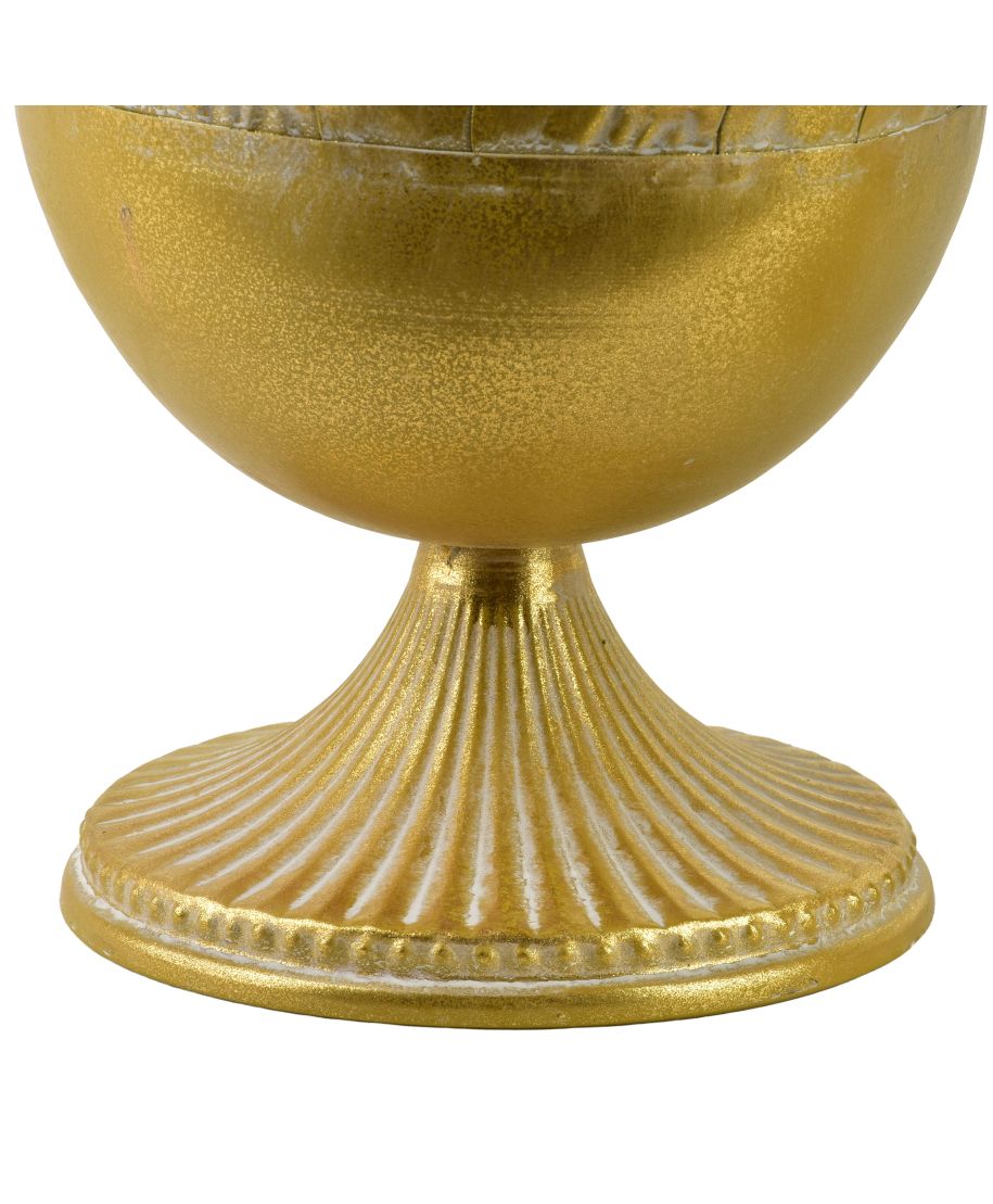 MARINA Komplet 2 osłonek dekoracyjnych GOLDWyjątkowa dekoracja w eleganckim, złotym wykończeniuKomplet dwóch osłonek dekoracyjnych MARINA w kolorze gold to stylowy element aranżacyjny, który doda wnętrzu elegancji i wyrafinowanego charakteru. Wykonane z metalu, osłonki zachwycają dekoracyjnym tłoczeniem inspirowanym motywami roślinnymi oraz subtelnym, postarzanym wykończeniem w odcieniu złota.Stabilna, ozdobna podstawa nadaje im klasyczną formę, dzięki czemu doskonale prezentują się zarówno pojedynczo, jak i w komplecie. Idealnie sprawdzą się jako oprawa dla roślin zielonych, kwiatów sezonowych lub kompozycji dekoracyjnych. Świetnie komponują się z wnętrzami w stylu glamour, modern classic, vintage oraz boho.To elegancki akcent, który podkreśli charakter salonu, jadalni, sypialni czy przestrzeni reprezentacyjnej.Cechy produktu:komplet 2 osłonek dekoracyjnychwykonane z metaludekoracyjne tłoczenia o motywie roślinnymkolor: gold (złote, lekko postarzane wykończenie)stabilna, ozdobna podstawado użytku wewnętrznegoWymiary:większa osłonka: 27 x 27 x 34 cmmniejsza osłonka: 21 x 21 x 19 cm