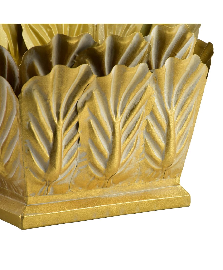 Komplet trzech osłonek dekoracyjnych MARINA w kolorze gold to wyjątkowa propozycja dla miłośników stylowych dodatków. Wykonane z metalu, ozdobione efektownym tłoczeniem inspirowanym motywem liści, przyciągają uwagę dopracowanymi detalami oraz subtelnym, lekko postarzanym wykończeniem w odcieniu złota.Szeroka, geometryczna forma z dekoracyjnym rantem nadaje im elegancki i wyrazisty charakter. Zestaw trzech rozmiarów umożliwia stworzenie harmonijnej kompozycji roślinnej na komodzie, konsoli, stole czy parapecie. Osłonki doskonale wpisują się w aranżacje w stylu glamour, modern classic, vintage oraz boho, wprowadzając do wnętrza ciepło i nutę luksusu.To funkcjonalna dekoracja, która podkreśli piękno roślin i stanie się stylowym elementem wystroju.Cechy produktu:komplet 3 osłonek dekoracyjnychwykonane z metaludekoracyjne tłoczenia o motywie roślinnymkolor: gold (złote, lekko postarzane wykończenie)elegancka, geometryczna formado użytku wewnętrznegoWymiary:32 x 32 x 20 cm31 x 31 x 20 cm25 x 25 x 20 cm