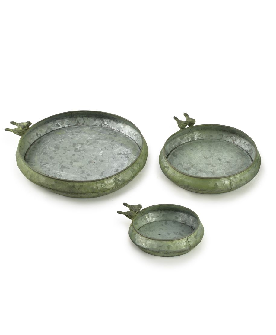 Komplet 3 metalowych poidełwk z kolekcji MARINA marki MONDEX since 1986r. Odkryj subtelny urok i praktyczność z kompletem 3 poidełek dekoracyjnych MARINA.Te wyjątkowe poidełka w stylu vintage są nie tylko estetyczne, ale również funkcjonalne, co czyni je idealnym wyborem dla miłośników pięknych i praktycznych dodatków. Korzyści: Styl vintage: unikalne wykończenie i delikatne zdobienia nadają poidełkom niepowtarzalny charakter, który wzbogaci każde wnętrze lub przestrzeń na zewnątrz.Trzy różne rozmiary: L: średnica 26,7 cm, wysokość 3,8 cm M: średnica 21,6 cm, wysokość 3,8 cm S: średnica 14,7 cm, wysokość 3,8 cm Różnorodność wielkości pozwala na różne zastosowania w zależności od potrzeb. Wysoka jakość wykonania: poidełka są wykonane z trwałych materiałów, zapewniając odporność na warunki atmosferyczne i długotrwałe użytkowanie. Uniwersalność zastosowania: sprawdzą się zarówno w ogrodzie, na tarasie, jak i jako element dekoracyjny we wnętrzach. Zastosowanie: Doskonałe jako poidełka dla ptaków . idealne do umieszczenia w ogrodzie, na balkonie lub tarasie, aby przyciągnąć ptaki i ożywić przestrzeń.