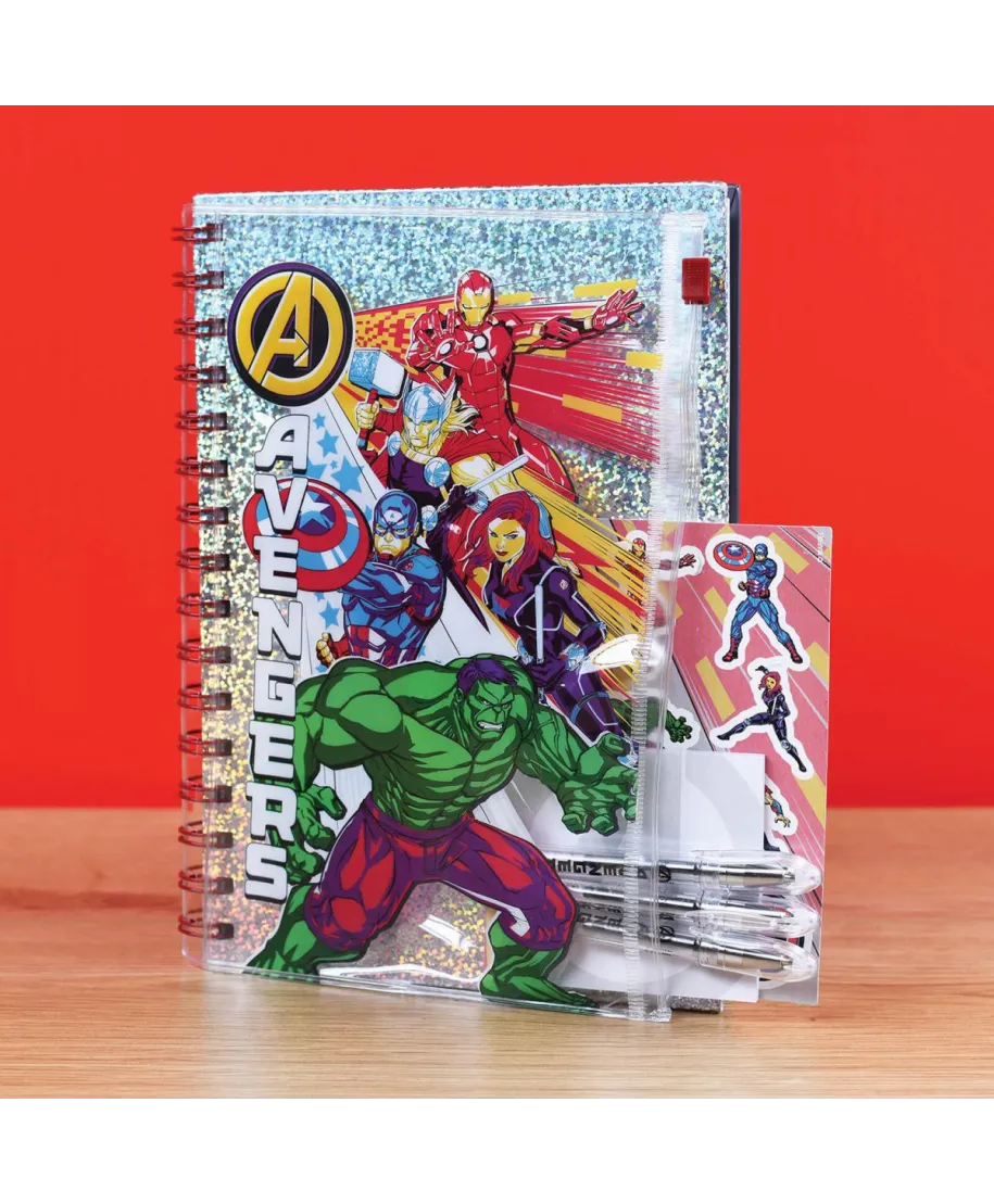 Marvel Avengers Burst Notes A5 z Przyborami - Notatnik z motywem Avengers i zestawem przyborów Przedstawiamy notatnik Marvel Avengers Burst Notes A5 z Przyborami, który przeniesie Cię w świat niezwykłych superbohaterów Avengers. Ten wyjątkowy notatnik przedstawia motyw związany z Avengers i posiada unikalne elementy graficzne, które przywołują na myśl ich niesamowite moce i przygody. Co więcej, w zestawie znajduje się komplet przyborów, który umożliwi Ci jeszcze lepsze korzystanie z notatnika. Teraz możesz zapisywać swoje myśli i czuć się jak prawdziwy członek drużyny Avengers. Format: A5 Oprawa: miękka Ilość stron: 160 Rodzaj: w linie Wykończenie: spiralne Zamknięcie: brak Oficjalne wydanie Notatnik Marvel Avengers posiada licencję producenta. Kupując w naszym sklepie, masz 100% pewności, że otrzymasz oryginalny produkt.