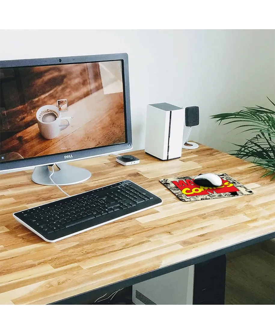 Podkładka pod myszkę "Marvel Comics" Oddaj hołd klasycznym komiksom z tą niesamowitą podkładką pod mysz "Marvel Comics". Autentyczne panele komiksowe w stonowanych kolorach stanowią tło tego designu, tworząc uczucie nostalgii. Dominujący, klasyczny napis "Marvel Comics" podkreśla dziedzictwo i tradycję marki. Podkładka jest nie tylko stylowym dodatkiem, ale także funkcjonalnym narzędziem, które zapewnia komfort i precyzję ruchów myszy. Idealna dla każdego fana komiksów, który chce podkreślić swoją pasję i dodatkowo ozdobić swoje miejsce pracy. Specyfikacje produktu: Antypoślizgowa: tak Materiał: neopren Wzmocnione krawędzie: nie Wymiar podkładki: 23x19 cm Wymiar opakowania: 30x22,5 cm Oficjalne wydanie Produkt posiada licencję producenta. Kupując w naszym sklepie masz 100% pewności, że otrzymasz oryginalny produkt. Zamawiając w autoryzowanym sklepie wspierasz ulubionych artystów, twórców i marki.
